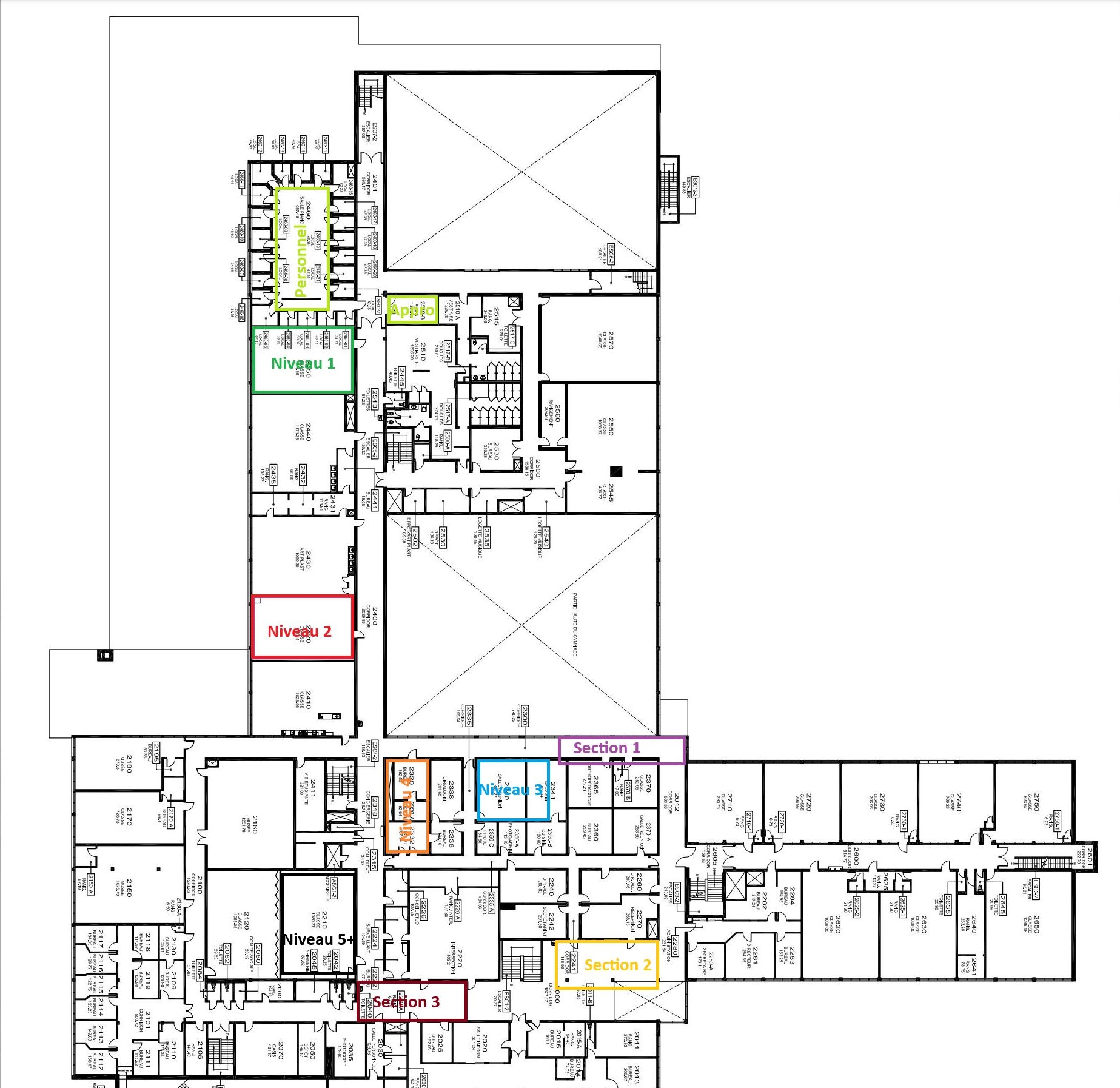 • Autre : Les présences seront désormais prises par section. À votre arrivée, veuillez déposer vos effets personnels dans votre local de niveau et vous diriger vers le point de rassemblement de votre section. Voir plan de l'école.